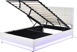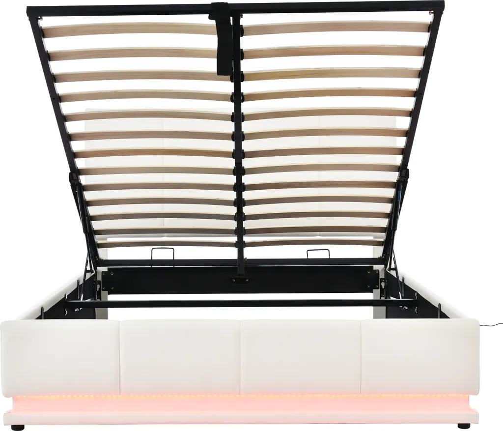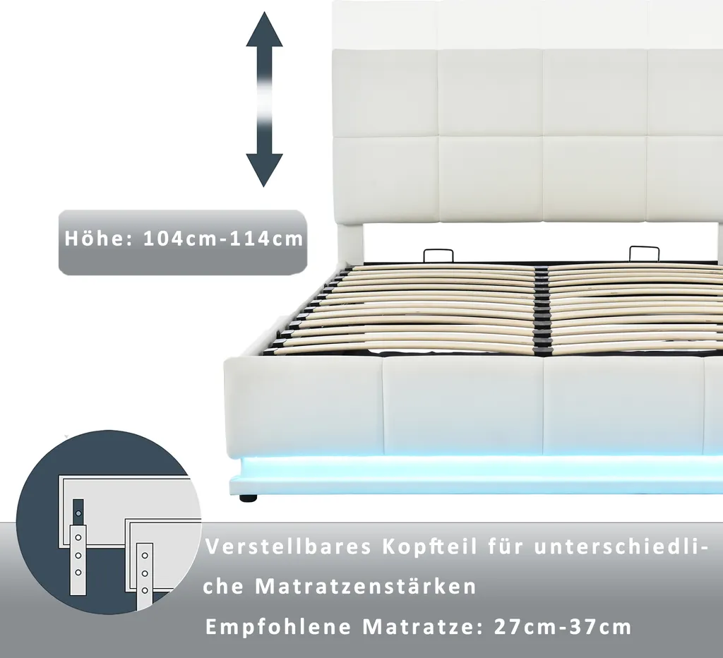 🌱【Großer Stauraum & hydraulischen Doppelhubmechanismus】Dieses Stauraumbett verfügt über einen hydraulischen Doppelhubmechanismus. Mit 35 cm Nutzfläche unter dem Lattenrost entspricht es der Aufbewahrung eines zweitürigen Kleiderschranks, ideal für kleine Häuser oder Wohnungen mit begrenztem Platz.