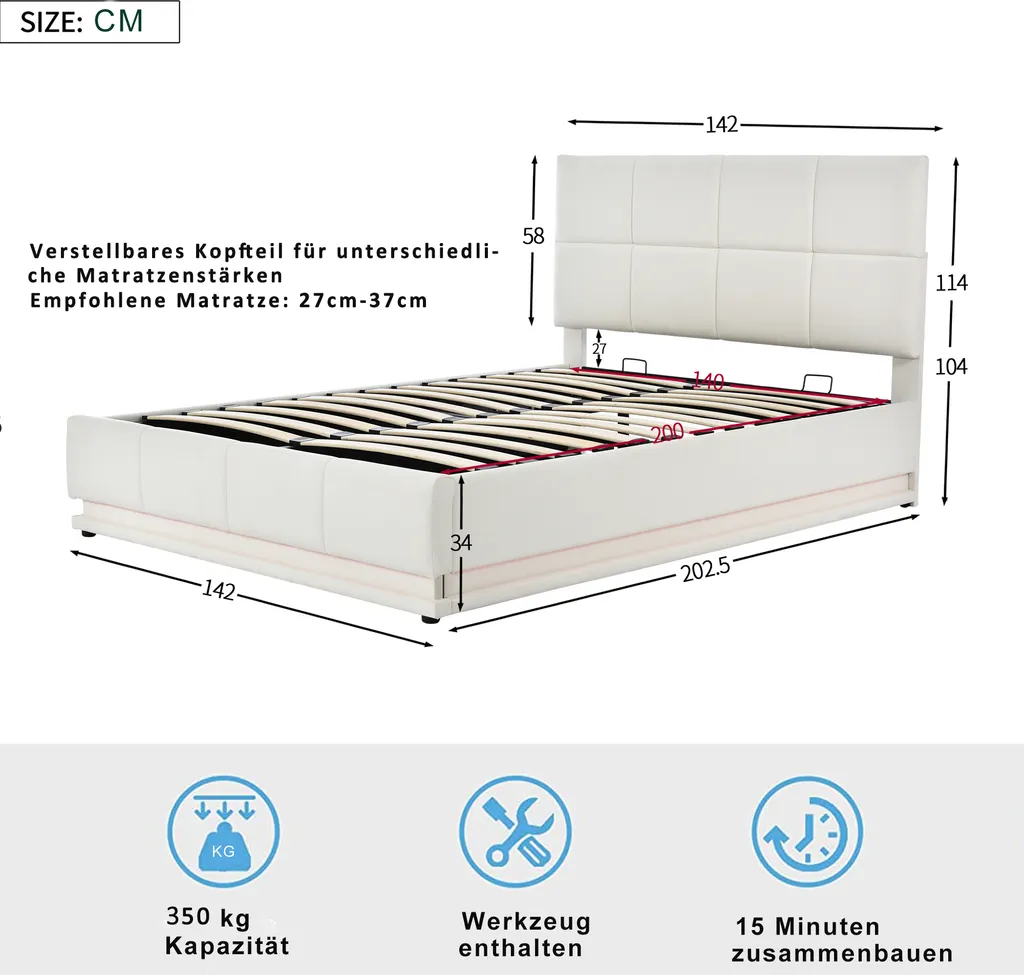 🌱【Einfach zu montieren】Die Gesamtgröße des Bettes beträgt 203 x 142 x 104 (114) cm, belastbar bis 350 kg. Dieses Produkt wird in 2 Paketen geliefert und kommt nicht zur gleichen Zeit an.