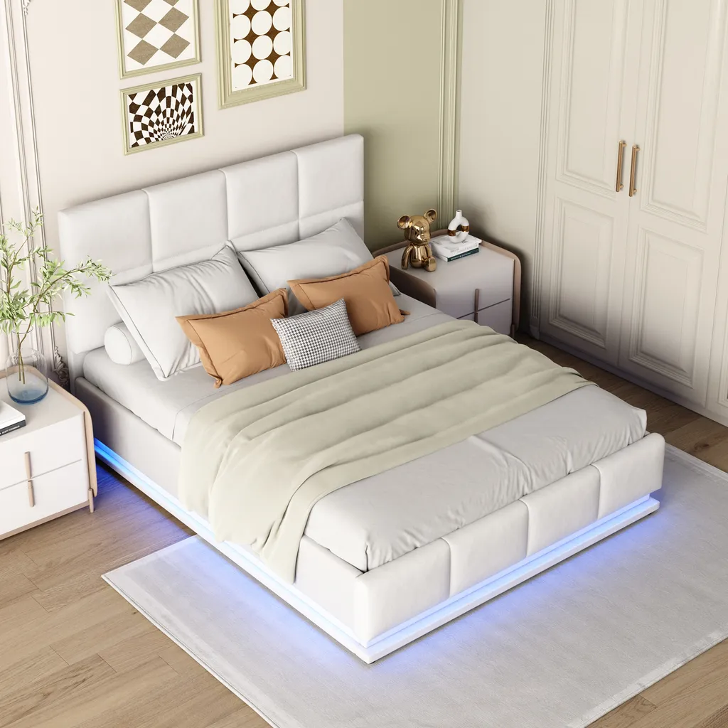 🌱【Mit LED-Licht und Fernbedienung】Mit stilvollem Kunstlederdesign dekoriert, gibt es schöne LED-Leuchten rund um das Bett, die über eine 24-Tasten-Fernbedienung bedient werden, mit 4 automatischen Wechselmodi und 16 Lichtwechselfarben.