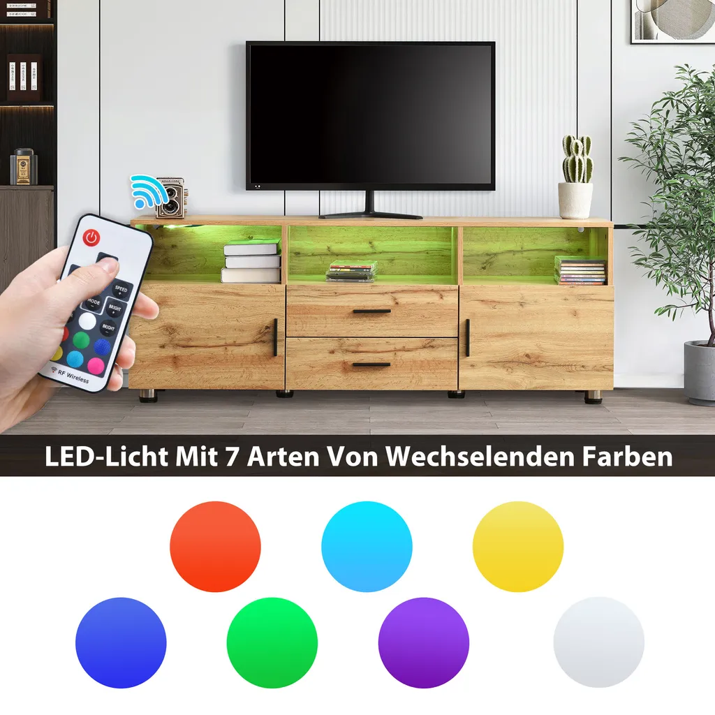 Die Tischplatte ist groß genug, um den Fernseher aufzunehmen. Das Lowboard bietet ausreichend Stauraum und Ausstellungsfläche für Bücher, DVD-Player usw.