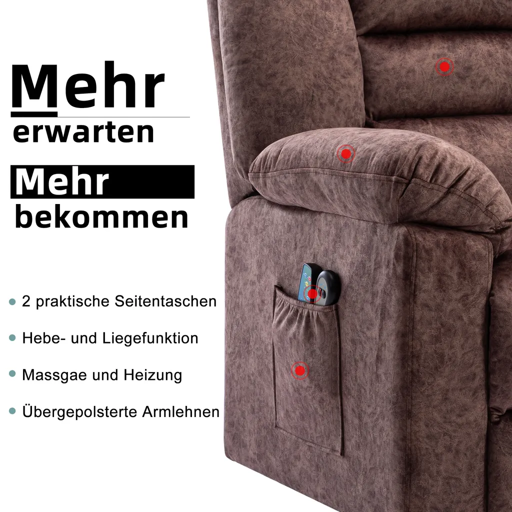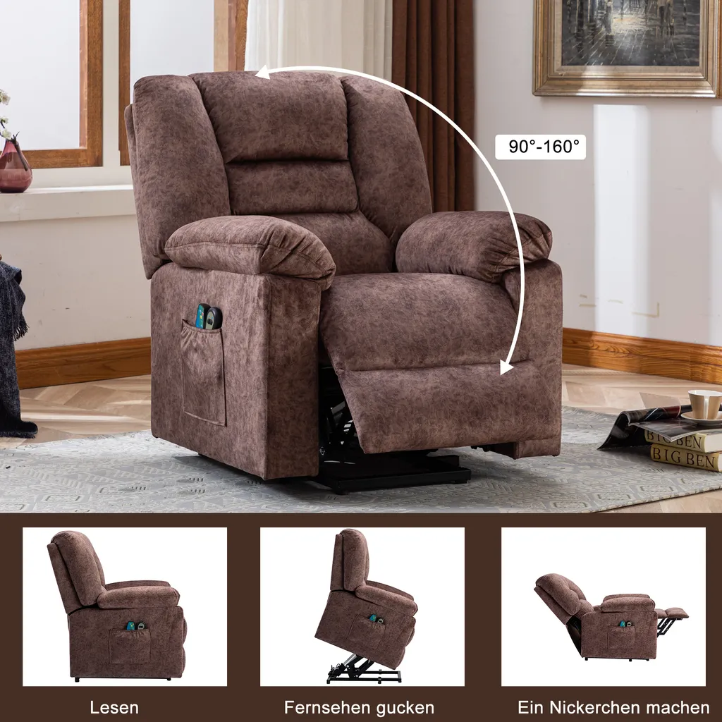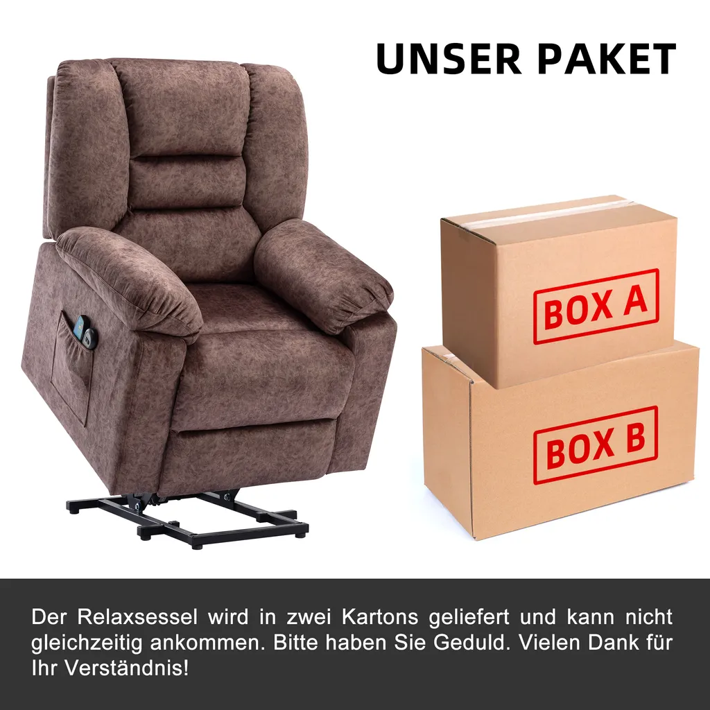 Der elektrische Hebestuhl ist aus hochwertigem Material gefertigt, er hat dicke Kissen, die mit hochdichten Schwämmen gepolstert sind, was das Sitzen im Stuhl unterstützt, aber dennoch sehr bequem ist. Weicher Stoff mit einem schönen Finish und Nähten, die sehr bequem sind. Der elektrische Relaxsessel besteht aus einem stabilen Holz- und Metallrahmen in langlebiger und sicherer Qualität. Der hochbelastbare, sichere und qualitätsgeprüfte Hub- und Kippmotor mit 25000 Geschwindigkeiten ist ebenfalls sehr zuverlässig.