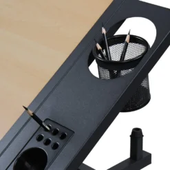 BESONDERHEITEN: Der Bürotisch verfügt über zwei Schubladen und Stauraum unter der Tischplatte und rechts befindet sich eine Ablage für Stifte und Zeichenutensilien