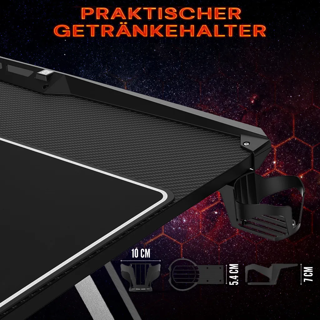 Wir haben mit dem Midori Gaming Tisch wirklich an Alles gedacht. Bei einem intensiven Gamingabenteuer kann es durchaus passieren, dass Sie so vertieft sind, dass Sie Ihr Umfeld aus dem Blick verlierenund unglücklicherweise Ihr Getränk verschütten. Damit Ihnen solche Ärgernisse erspart bleiben und Sie ungehindert an Ihrem Gamingspaß teilhaben könne, haben wir unseren Gaming Tisch mit einem Getränkehalter ausgestattet. Somit können Sie mit einem Energy Drink ungestört die Nächte durchspielen.
