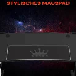 Das 75 x 30 cm große Full Desk Mauspad unseres Midori Gaming Tisches bietet Ihnen ausreichend Platz, um Ihre Skills unter Beweis zu stellen. Auf der hochwertigen PolyurethanBeschichtung funktioniert Ihre Gamingmaus exzellent, sodass sogar kleinste Bewegungen optimal auf Ihren Bildschirm übertragen werden. Gekrönt wird die hervorragende Funktionalität mit unserer Midori Krone, die dem Mauspad ein überlegenes Design verleiht.