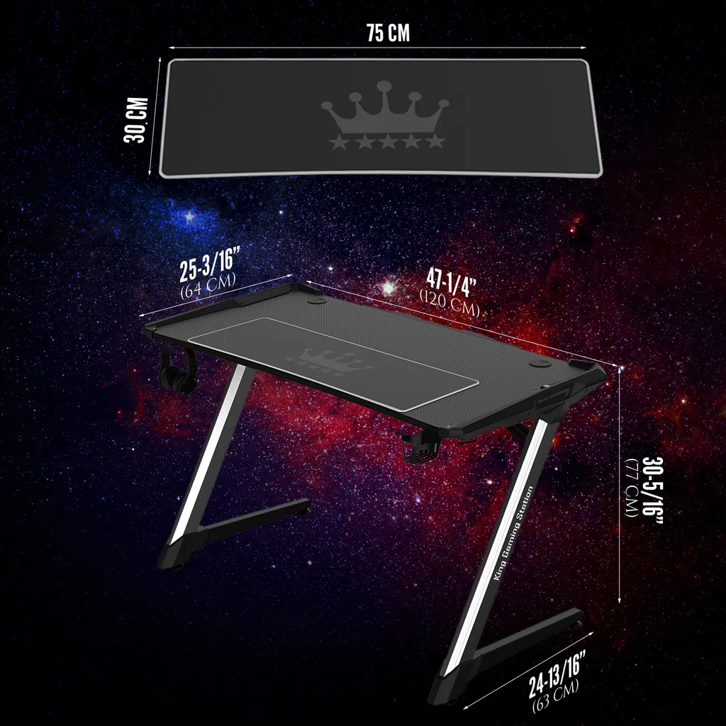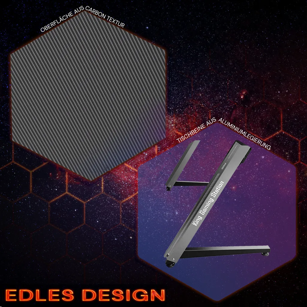 Mit dem Midori Gaming Tisch wird nicht nur für eine absolute Gamingstimmung gesorgt, sondern auch für ein optisches Erlebnis. Seine edlen Aluminium-Tischbeine sowie die Tischoberfläche aus einer Carbon Textur verleiten einen zum Hingucken und machen den Computertisch zu einem richtigen Augenschmaus. Gekrönt wird das edle Design – im wahrsten Sinne des Wortes – mit unserer Krone, die an den Tischbeinen sowie auf dem Mauspaderscheint, – weil Sie nur das Beste verdienen.