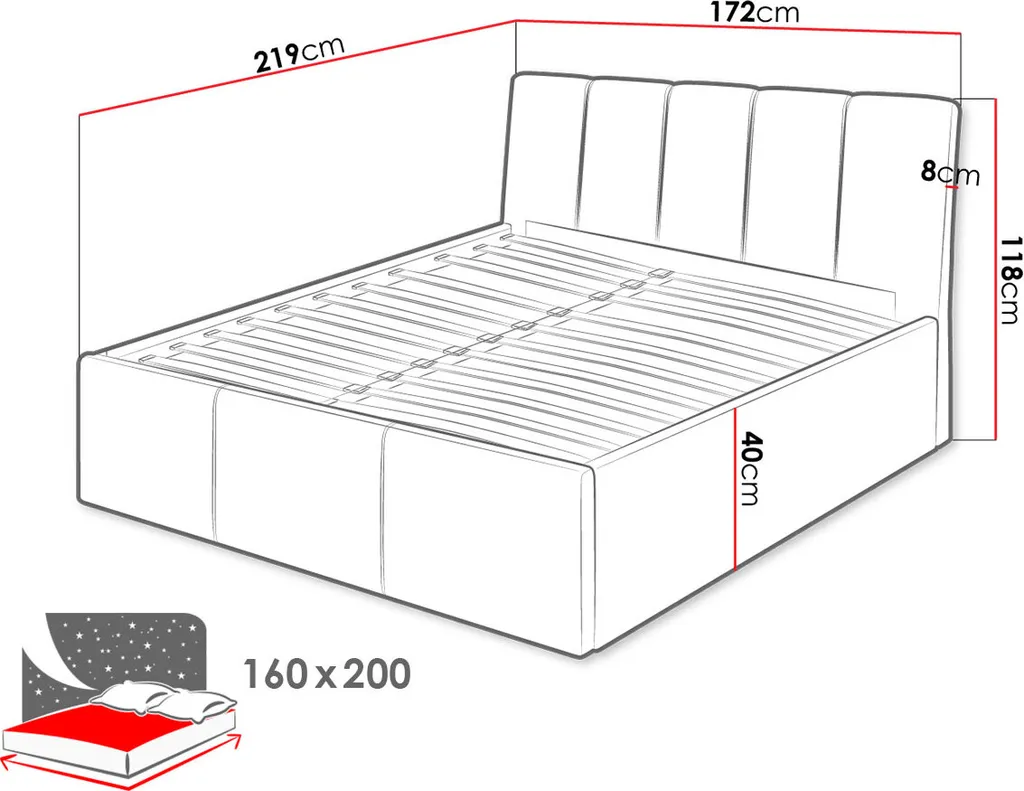 - Schlaffläche 160×200 cm,