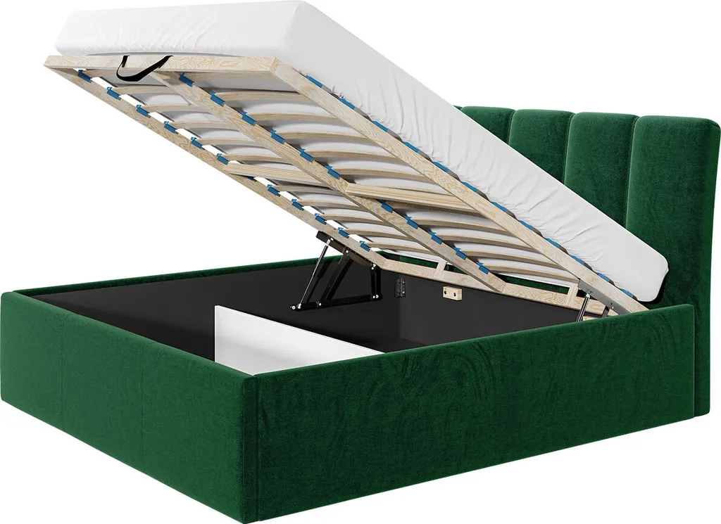 - Der Boden des Bettkastens ist mit Stoff ausgelegt,