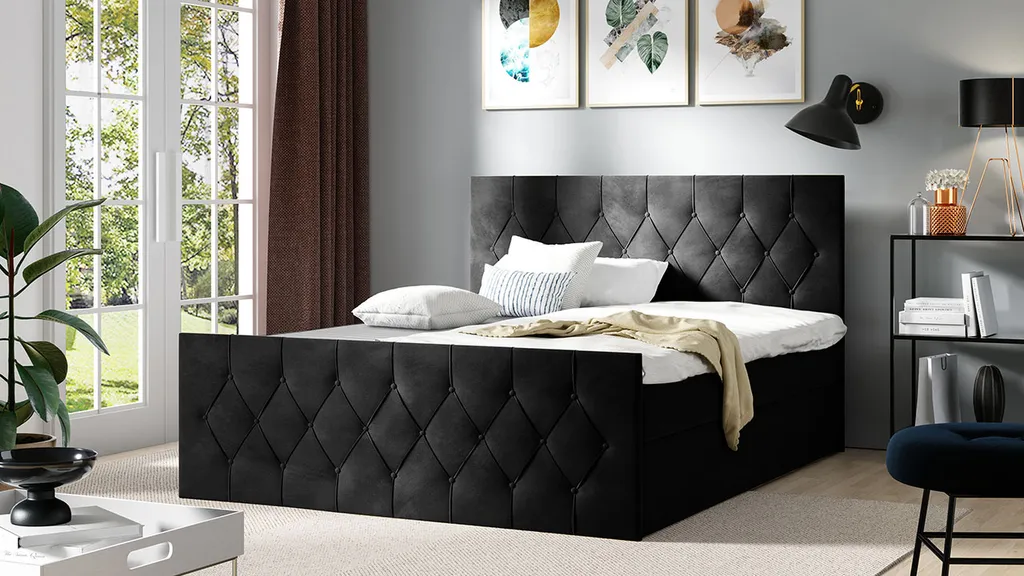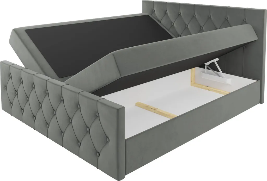- Bett im Standard mit Bettkasten für die Bettwäsche auf beiden Seiten des Bettes.