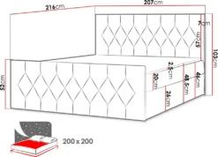 - Breite: 96,5 cm, Höhe: 25 cm, Länge: 197 cm.