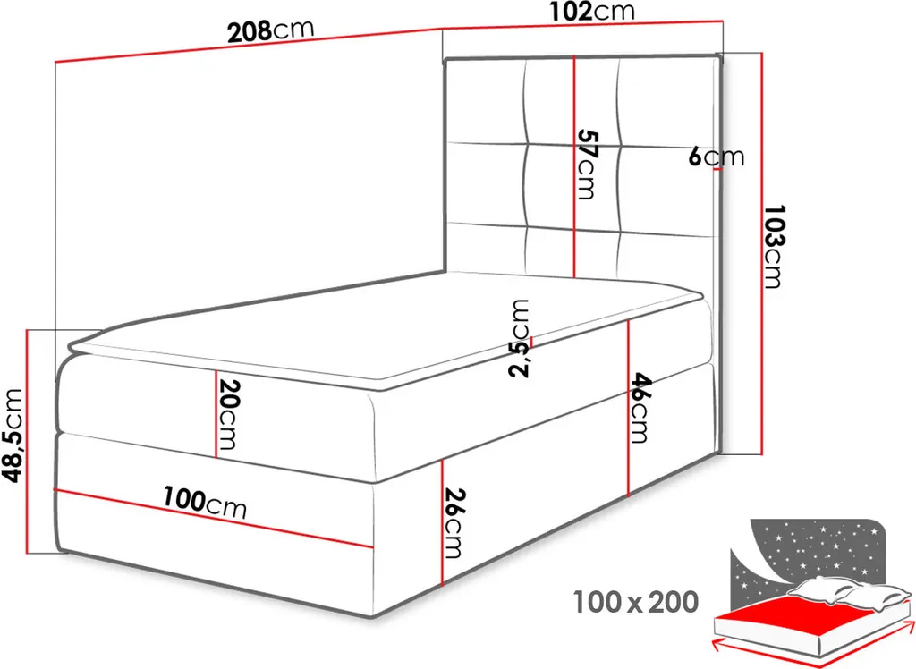 - Schlaffläche 100×200 cm.