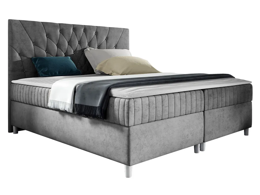 - Bett im Standard mit zwei Bettkästen für die Bettwäsche auf beiden Seiten des Bettes. Durch Federn wird das Aufklappen erleichtert,