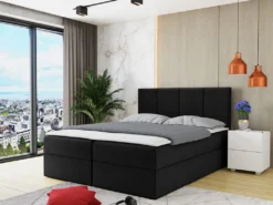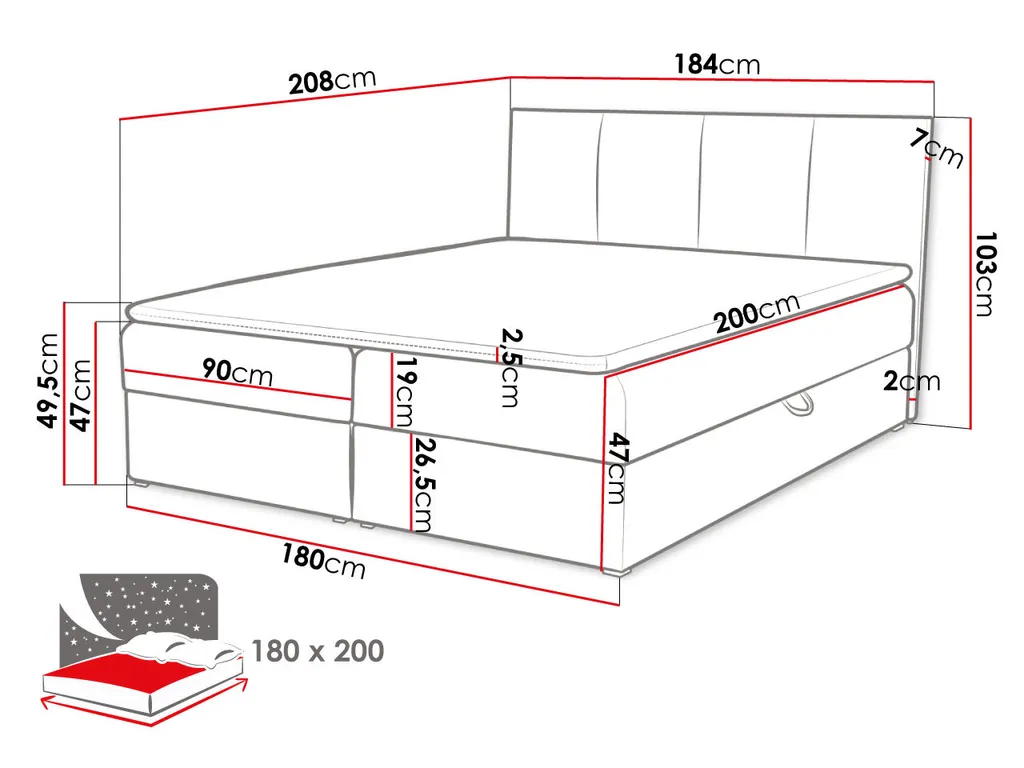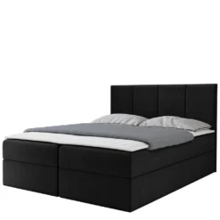 - Bett im Standard mit zwei Bettkästen für die Bettwäsche auf beiden Seiten des Bettes. Durch Federn wird das Aufklappen erleichtert.