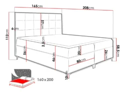 - Bett im Standard mit zwei Bettkästen für die Bettwäsche auf beiden Seiten des Bettes. Durch Federn wird das Aufklappen erleichtert,
