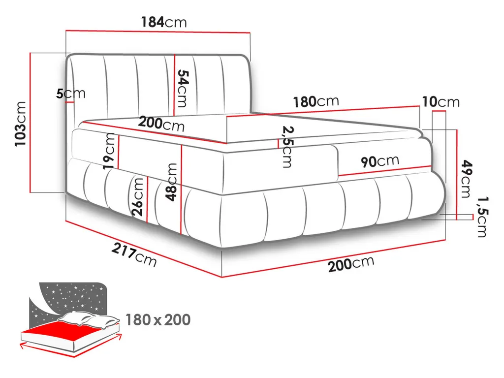 – Bett im Standard mit zwei Bettkästen für die Bettwäsche auf beiden Seiten des Bettes,