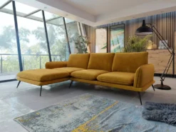 - Freistehendes Ecksofa (Rücken auch überzogen).