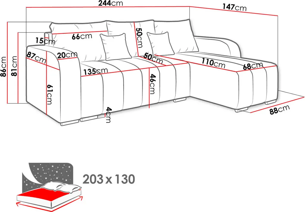 - Freistehendes Ecksofa (Rücken auch überzogen).