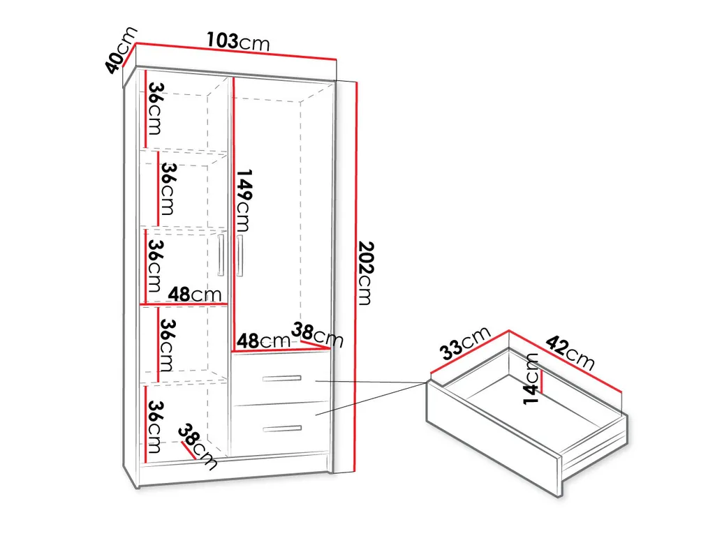 - Im Schrank befindet sich eine Kleiderstange zum Herausziehen,
