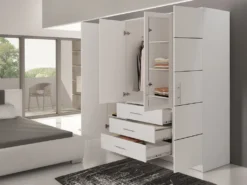 - Die Möbel werden in Paketen mit Montageanleitung zum Selbstaufbau bis zur ersten Tür geliefert.