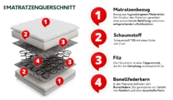 - Empfohlen wird die Matratze alle 2-3 Monate umzudrehen.