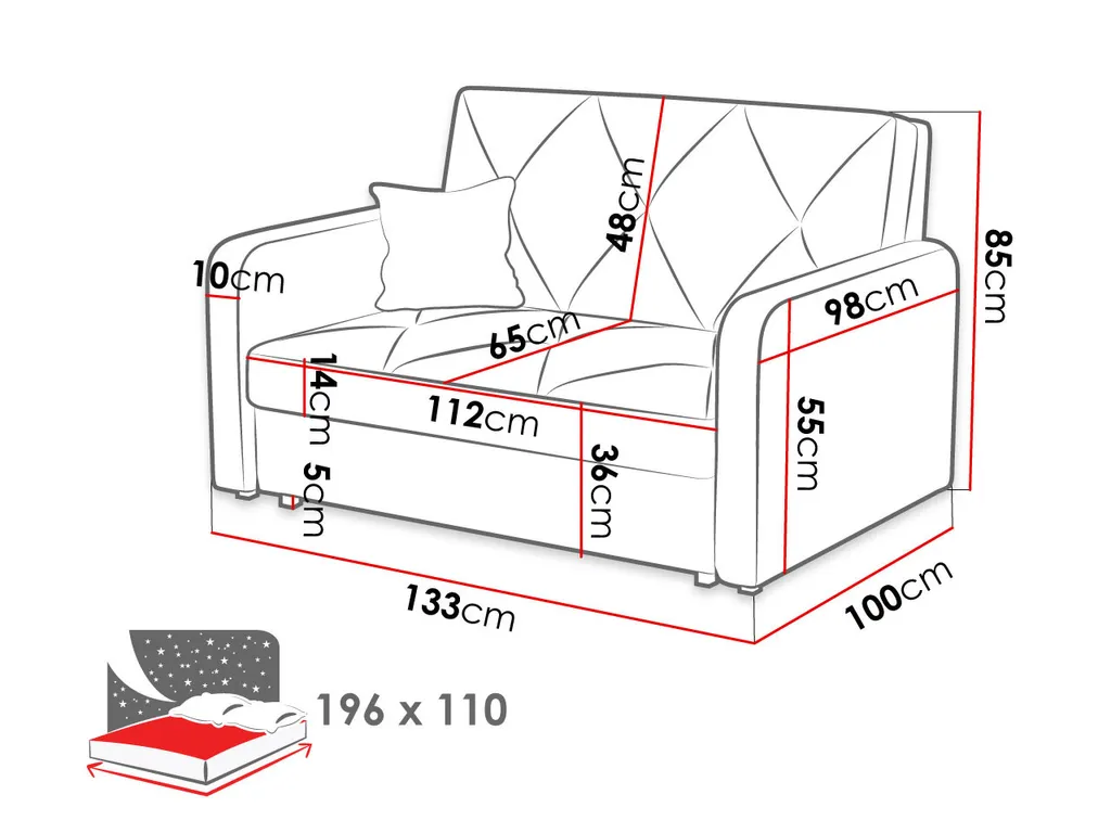 - Schlaffläche: 196×110 cm.