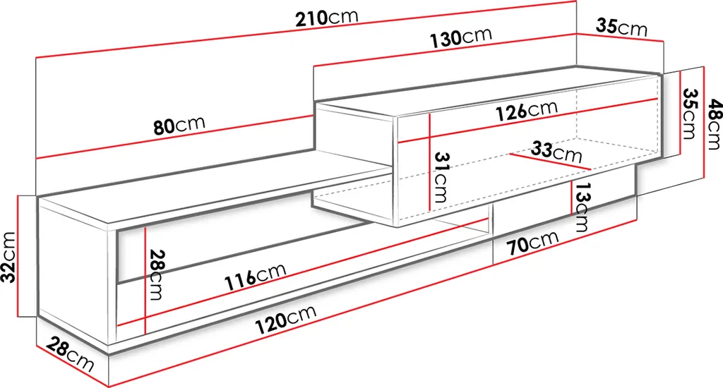 - TV-Schrank ist ein universelles Möbelstück – man kann ihn aufstellen bzw. aufhängen,