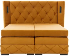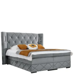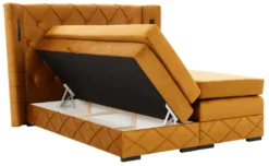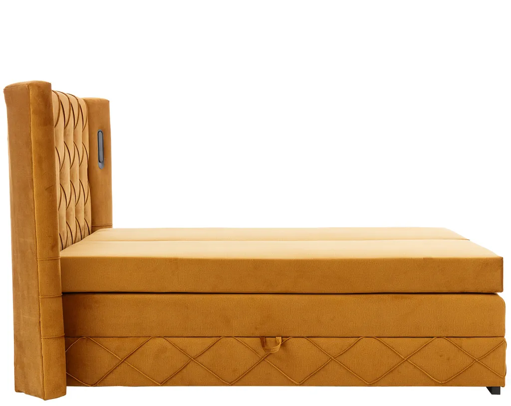 Das Boxspringbett mit mehreren Aufbewahrungsmöglichkeiten ist aus stabilen und extrem langlebigen Materialien gefertigt und wird standardmäßig mit einem doppelten Aufbewahrungskasten und einer PREMIUM-Matratze geliefert