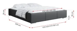Liegefläche: 120 x 200 cm / 140 x 200 cm / 160 x 200 cm / 180 x 200 cm / 200 x 200 cm