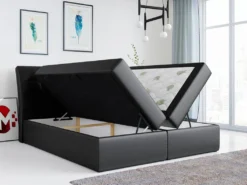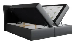 Das Boxspringbett mit mehreren Aufbewahrungsmöglichkeiten ist aus stabilen und extrem langlebigen Materialien gefertigt und wird standardmäßig mit einem doppelten Aufbewahrungskasten und einer PREMIUM-Matratze geliefert.