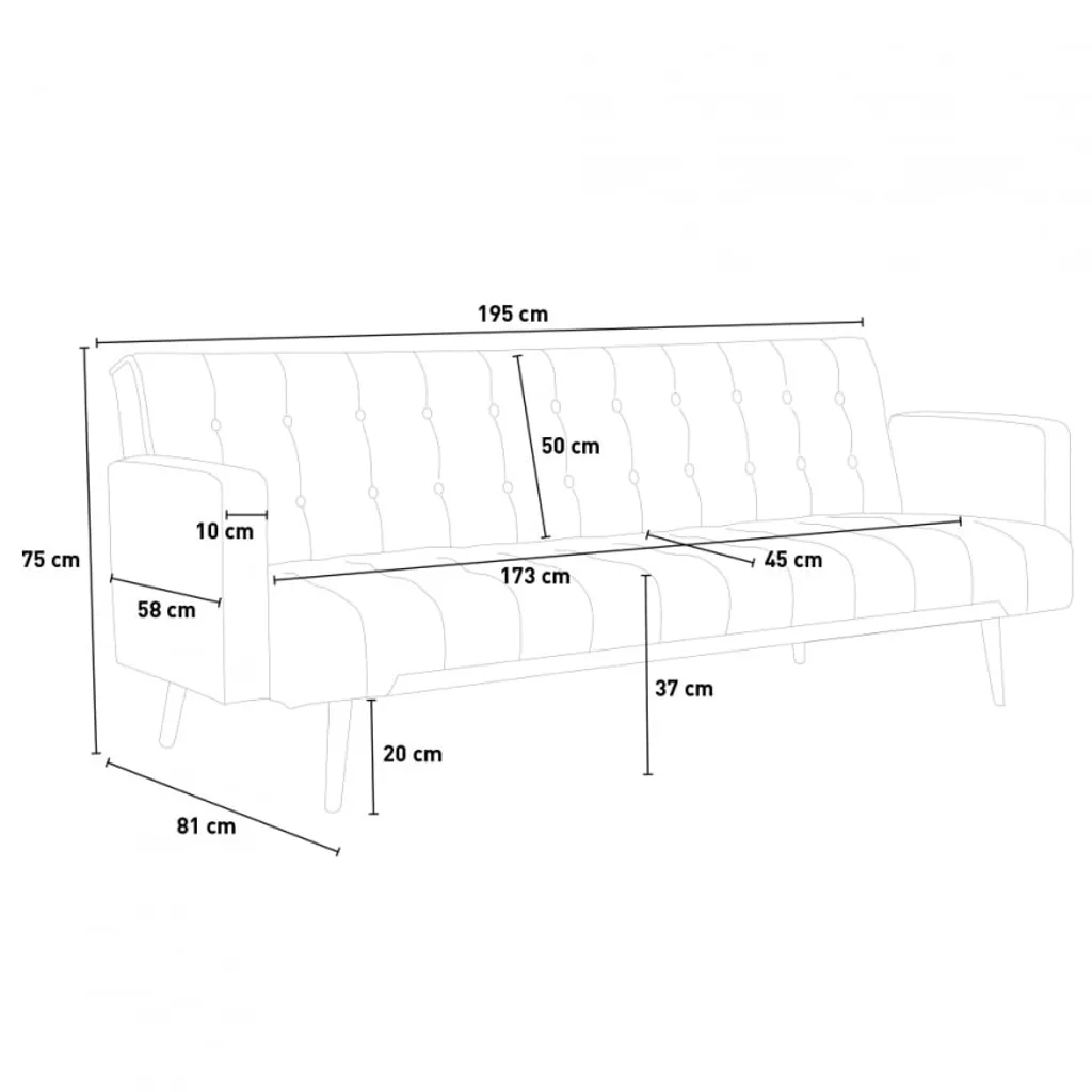 - Abmessungen des Sofas: 193 x 81 x 75 cm (Breite, Tiefe, Höhe)