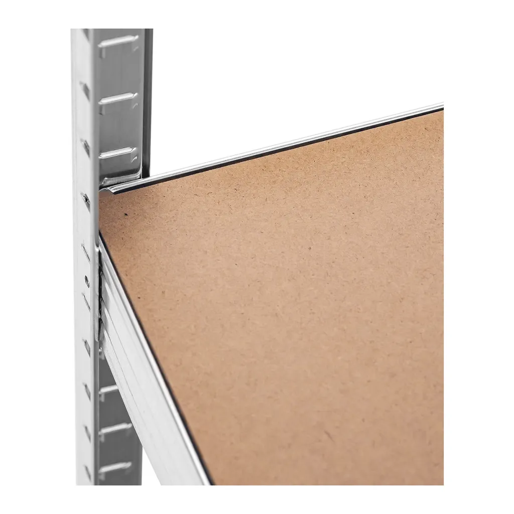 Die Fächer sind im Gegensatz zu Drahtfachböden durchgehend. Dadurch hält das Kellerregal auch kleinste Gegenstände im gewünschten Fach. Darunterliegende Güter bleiben auch bei auslaufenden Flüssigkeiten geschützt.