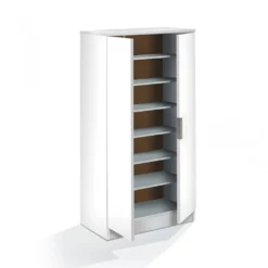 Multifunktionaler Kleiderschrank mit zwei Türen mit sechs Regalen, weiße Farbe.