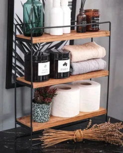Dieses stilvolle Wandregal von Naturn Living ist aus hochwertigem mattschwarzem Metall gefertigt und verfügt über drei Wandregale. Es eignet sich sehr gut für den Einsatz in kleinen Räumen wie Bad, Küche oder Flur, da es schön und kompakt ist. Mit seiner natürlichen Optik fügt er sich in jeden Raum ein.
