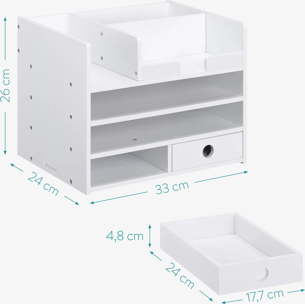 - ZEITLOSES DESIGN: Auf Grund des schlichten Designs ist der Büroorganizer für jede Einrichtung geeignet. Durch die freundliche, warme und natürliche Farbe ist das Regal zusätzlich ein Blickfang.