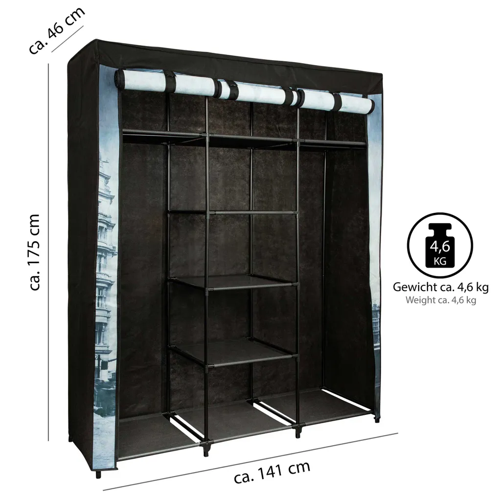 ONVAYA® Stoffschrank schwarz – Motiv London