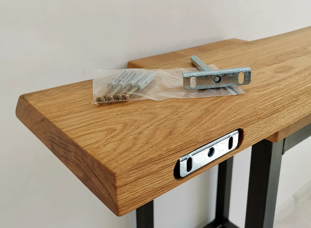 - Das Wandboard ist einbaufertig geölt, die Risse und Äste sind mit Epoxy ausgegossen.