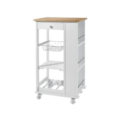 Phoenix Nizza Servierwagen mit 1 Schublade, 1 Metallkorb, 1 offenen Ablage und 1 Flaschenregal, robuste Arbeistfläche aus Bambus (B x H x T) 50 x 86 x 37 cm