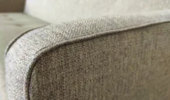 Der verwendete Soro-Stoff zeichnet sich durch seine sehr weiche, warme Veloursstruktur aus. Eine weitere Besonderheit stellen die FĂĽĂźe aus Holz dar.