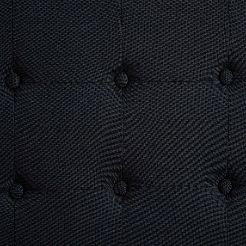 - Das stabile Bettgestell aus Holz ist mit einem Bezug aus Stoff in schwarz überzogen
