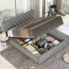 - Das stabile Bettgestell ist gepolstert mit Stoff in grau bezogen