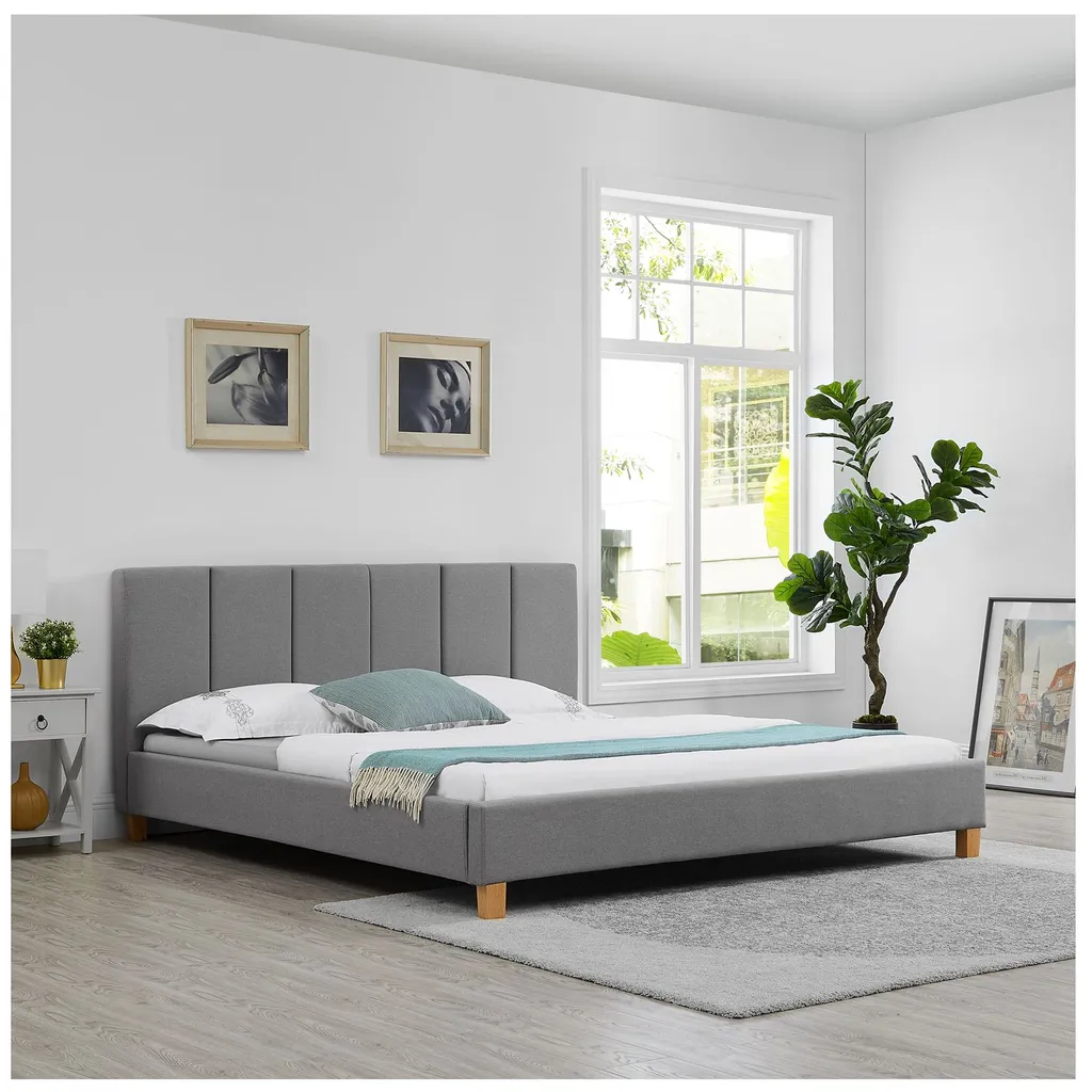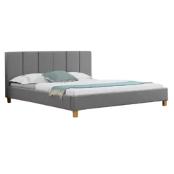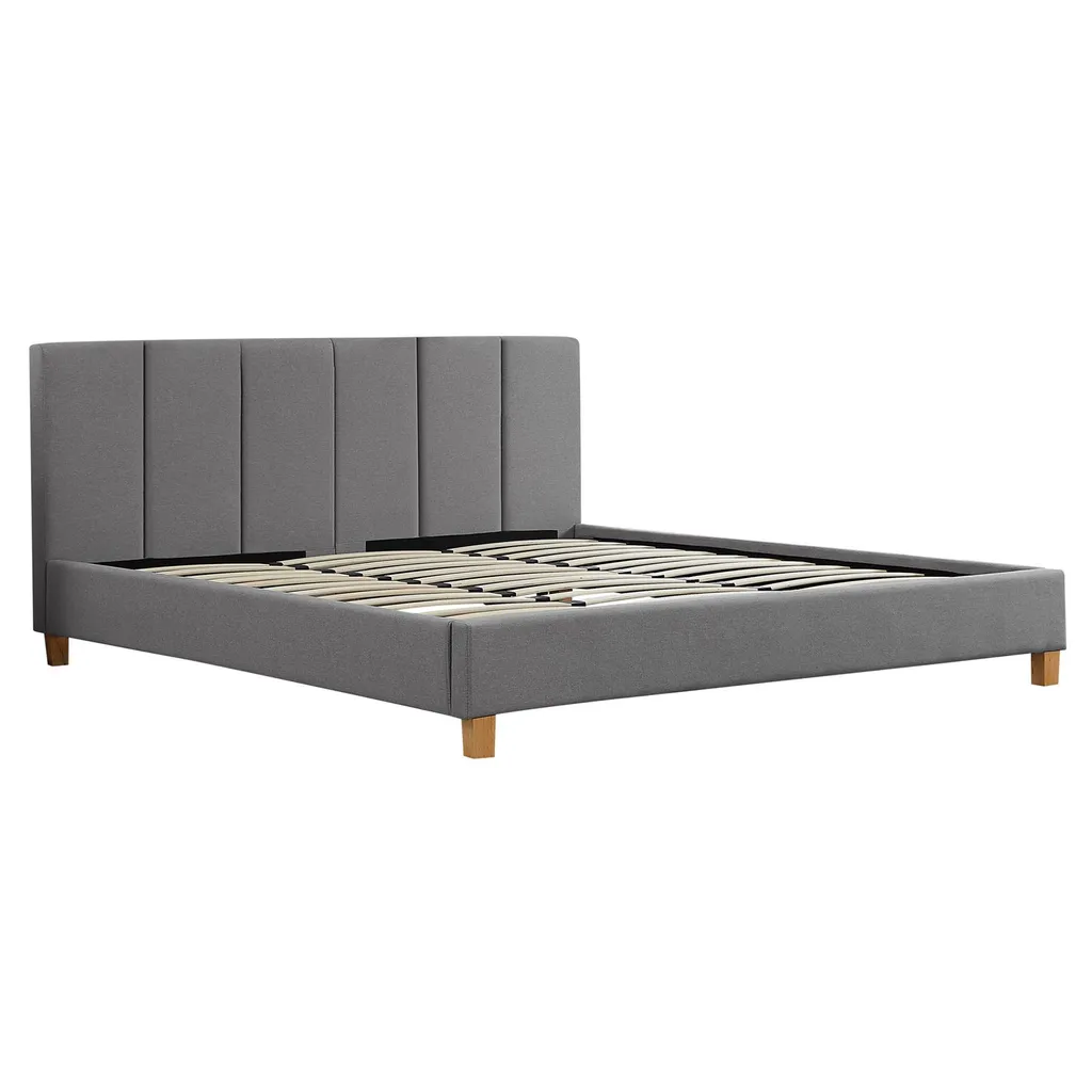 - Das stabile Bettgestell ist gepolstert und mit hochwertigem Stoff in grau bezogen