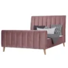 - Das Bettgestell ist gepolstert und mit Stoff in beige überzogen
