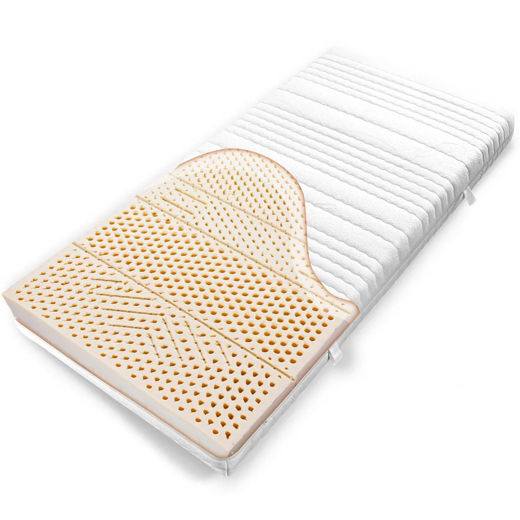 Die Natürlichkeit des 7-Zonen-LATEXCO-Stiftlatexkerns aus 100% Latex ohne Füllstoffe mit einem NATUR-Latexanteil von 20% erreicht aufgrund ihrer hohen Raumgewichte die gesunde natürliche Schlafhaltung sowie hohe Schlafruhe und besten natürlichen Schlafkomfort.