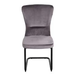 Dieser Polsterstuhl überzeugt durch sein besonders modernes Design und wird dadurch zum absoluten Hingucker in Ihrem Ess- und Wohnbereich. Die hohe Rückenlehne läd zum gemütlichen Anlehnen ein und bietet in Kombination mit dem weichen Samtbezug einen besonders angenehmen Sitzkomfort. Außerdem verleiht der Samtstoff diesem Stuhl eine entsprechend lebendige Optik, da das Stück je nach Lichteinfall seine Farbe verändert. Die abgerundeten und ausgestellten Ecken, die an die Silhoutte eines Ohrensessels erinnern, sowie die Raffung im unteren Teil der Lehne, sind kleine Details, die den eleganten Charakter des Stuhls unterstreichen. Das Untergestell aus schwarzem Metall rundet das stilvolle Design des Stuhls perfekt ab.