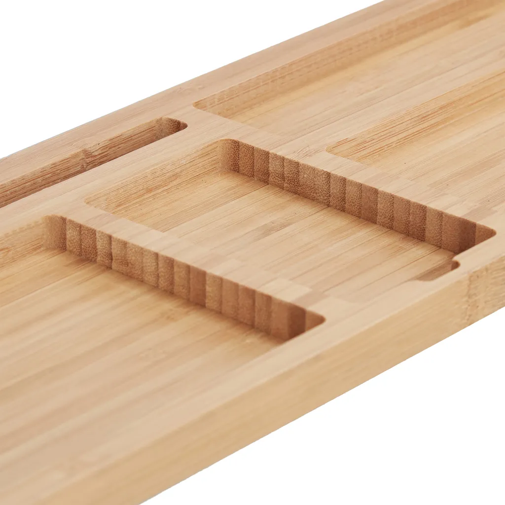 Mit der vielseitigen Schreibtischablage aus Bambus herrscht stets Ordnung am Arbeitsplatz. Die Stiftablage bietet mit sieben Fächern und Steckplätzen genügend Stauraum für Ihre Büroartikel und lässt die Tastatur elegant und platzsparend unterm Gehäuse verschwinden.