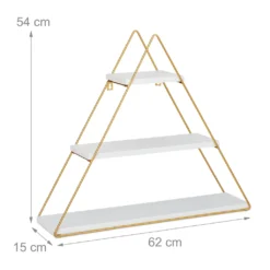 Verabschiede Dich von leeren Wänden und langweiligen Regalen. Mit diesem originellen String-Regal in Form einer Pyramide setzt Du Akzente in Wohn- oder Schlafzimmer. Gleichzeitig kannst Du auf 3 Regalbrettern Bücher, Souvenirs oder Pflanzen wirkungsvoll präsentieren. Die klaren Linien und das schlichte, geometrische Design lenken den Blick auf den Inhalt. In der Küche wird das Metallwandregal zur Ablage für Gewürze und Küchenutensilien. Nutze das vielseitigeNachbildungegal nach Deinem Geschmack.