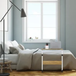 Mobiles Arbeiten leicht gemacht: Mit diesem Laptop-Tisch müssen Sie sich zum Arbeiten nicht immer an den Schreibtisch setzen. Dank der höhenverstellbaren Tischplatte in Holzoptik arbeiten Sie bequem vom Sofa, Sessel oder Bett aus. Der Beistelltisch im modernen Design ist dank seiner vier Rollen mobil; für die nötige Standfestigkeit sind zwei der Rollen mit einer Feststellbremse ausgestattet. Mit seinen kompakten Maßen von 60 x 40 cm passt der Laptop-Tisch auch in kleine Ecken und Nischen ihres heimischen Büros.