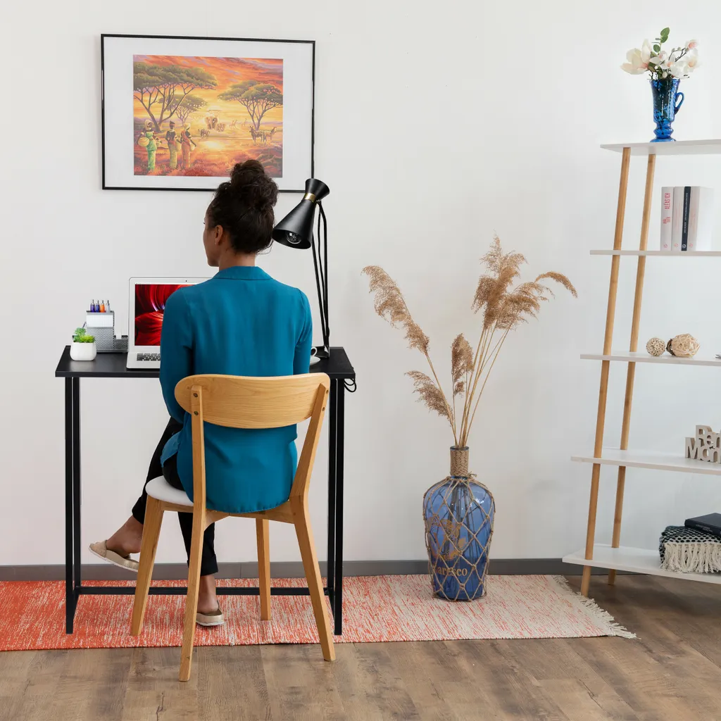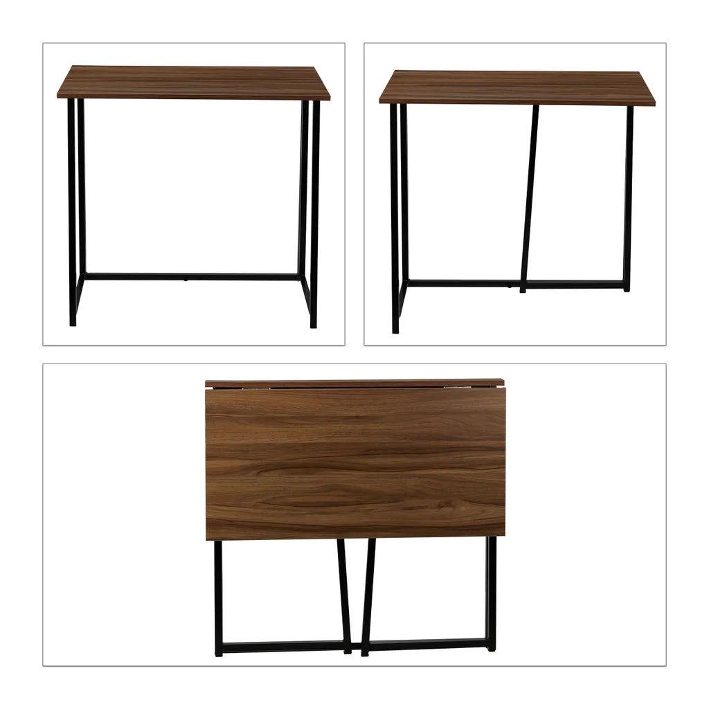 Mit diesem klappbaren Computerschreibtisch schaffen Sie einen flexiblen und zugleich schicken Arbeitsplatz. Der Arbeitstisch kann bei Bedarf ganz leicht zusammengeklappt werden. Somit sorgen Sie im Handumdrehen für mehr Platz im Büro. Besonders praktisch ist diese Funktion für Personen, die ihr Arbeitszimmer zu Hause haben und ihr Home Office am Ende des Tages verschwinden lassen wollen. Doch auch im Jugend- oder Wohnzimmer wird der Klapptisch dank modernem Design zum Hingucker. Platzieren Sie Stifteköcher, Dokumentenablagen, Computermonitor und vieles mehr auf der Arbeitsfläche und schon kann es los gehen.