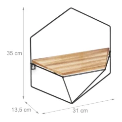 Mit dem schwarzen Hexagon-Regal mit filigranem Metallrahmen hauchst Du leeren Wänden im Wohn- oder Schlafzimmer neues Leben ein. Kleine Pflanzen, Bilder oder Dekofiguren finden mit dem Hängeregal einen tollen Platz an der Wand und werden dekorativ in Szene gesetzt. Auch in Flur oder Küche, wo sich das Schweberegal etwa für Gewürze eignet, fügt sich das schlichte, geometrische Design perfekt ein. Dank beiliegendem Montagematerial ist das Regal im Nu an der Wand befestigt.