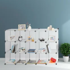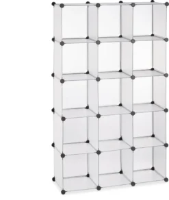 Dieses Regalsystem bietet Ihnen zwei praktische Funktionen in einem. Bringen Sie in den 15 Fächern Ihre CDs, Bücher oder Ihre Kleidung unter. Das Regal eignet sich aber auch als klassischer Raumtrenner und gibt Ihrem Zimmer einen neuen Blickwinkel. Das Standregal aus Kunststoff lässt sich über ein Stecksystem schnell und einfach aufbauen, ohne an Stabilität einzubüßen. Bei Bedarf lässt sich das Stufenregal in unterschiedlichen Formen zusammenbauen und kann dementsprechend individuell angepasst werden.