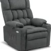 Entspannen Sie sich auf diesem üppigen und sehr komfortablen Liegestuhl aus Kunstleder! Der Stuhl ist dick gepolstert, mit weichem Kunstleder bezogen und hat einen stabilen Rahmen aus Holz und Stahl. Dadurch bietet er höchsten Komfort und Langlebigkeit. Da die Rückenlehne und die Fußstütze verstellbar sind, können Sie immer die bequemste Position finden. Mit einer 8-Punkte-Massage in 3 Intensitätsstufen und 5 verschiedenen Modi sowie einer Heizfunktion im Taillenbereich können Sie den Alltagsstress schnell vergessen. Darüber hinaus ist der Sessel mit Rollen ausgestattet, wodurch er leicht umstellt werden kann. In diesem Armsessel lässt es ich wunderbar lesen, fernsehen oder einfach nur entspannen.